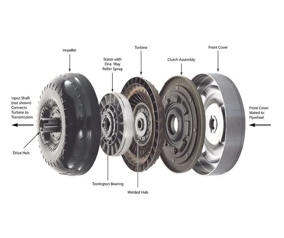 1. Pump (Impeller) – Connected to the engine; it pushes transmission fluid into the turbine.